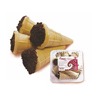 Вафельный мини-рожок с начинкой сгущенка вареная и декором.