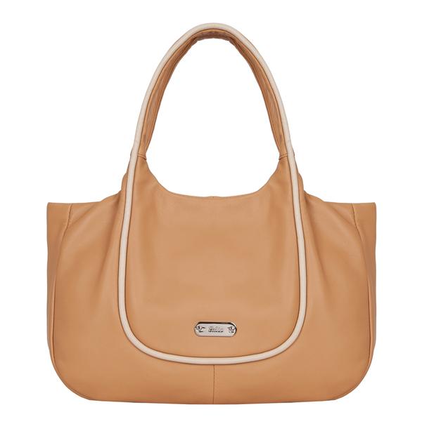 Женская сумка торговой марки Palio выполнена из натуральной кожи песочного цвета. Отделка - натуральная кожа бежевого цвета. Имеет кармашек на задней стенке. Внутри два отделения, разделенные средником на молнии, в одном - карман на молнии, в другом - кармашек для мобильного телефона и открытый кармашек. Сумка закрывается на пластиковую молнию. Пустая сумка не держит форму. Не вмещает формат А4. Цвет фурнитуры – серебро. Ножки на дне есть. Высота ручек 20 см. позволяет носить сумку на плече. В комплекте нет наплечного ремня.
