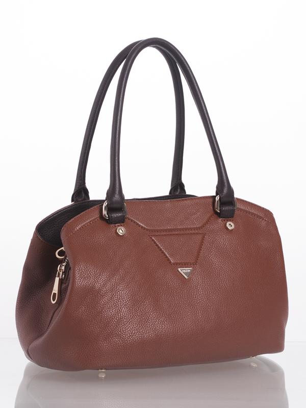 Женская сумка Palio из натуральной кожи. Сумка закрывается на три металлические молнии. Внутри среднего отделения - одно отделение, в котором карман на молнии, карман для мобильного и открытый карман. Боковые отделения не имеют карманов. Модель имеет карман на задней стенке, а так же ножки на дне. Высота ручек - 20 см.
