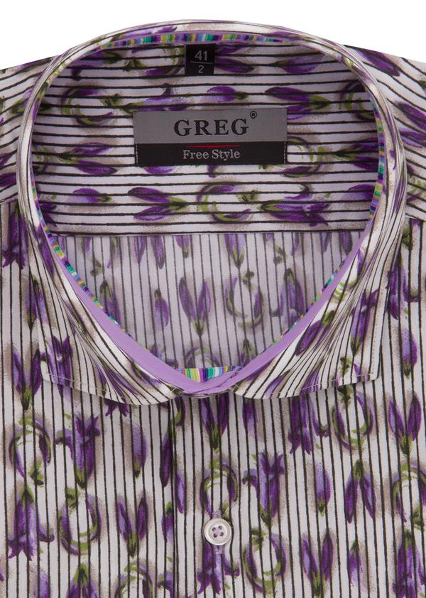 Приталенная с вытачками сиреневая сорочка Greg из дизайнерской коллекции хлопковых тканей. Тщательный контроль над всеми этапами производства от компании Michael Henne Textilien.GmbH гарантирует высокое качество изделия. Создана по немецким лекалам с учетом особенностей телосложения российских мужчин. Хлопковая сорочка мало сминается и легко утюжится благодаря новейшим технологиям изготовления ткани. Безупречную форму французского развернутого воротника надолго сохраняют качественные прикладные материалы. Оригинальность сорочки в полоску и с цветочным принтом подчеркивает сиреневая отделка внутренней планки и внутренней стойки с цветным кантом. Приталенную модель можно носить как заправленную в брюки так и на выпуск. Сорочка Greg создает идеальный силуэт и обеспечивает необходимую свободу движений.