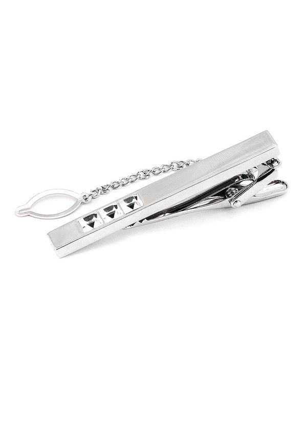 Зажим для галстука GREG с белыми стразами. Аксессуар из латуни с прочным гальваническим покрытием под серебро. Подвижный фиксатор и цепочка для пуговицы обеспечивают надежное крепление. Универсальная длина зажима подходит для всех видов галстуков. Лаконичное украшение подчеркнет изысканный вкус знатока классического стиля. Аксессуары GREG - эффектный подарок для современных мужчин.