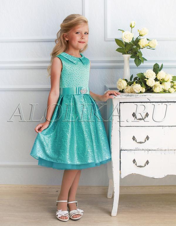 Ткань: Атлас Состав: Верх-100% полиэстер, подклад-100% хлопок Описание: Стильное нарядное платье для девочек. Лиф без рукавов с воротничком острой формы и верхний слой пышной юбки выполнены из атласа с изысканным узором. Элегантный пояс украшен аппликацией в виде бабочки, что делает модель неповторимой. Производитель оставляет за собой право изменения дизайна отделки, фурнитуры и оттенка ткани без потери для внешнего вида и качества изделий.