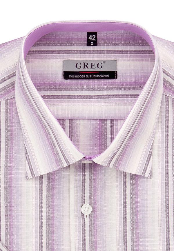 Приталенная сиреневая сорочка Greg из коллекции хлопковых тканей с добавлением льна. Тщательный контроль над всеми этапами производства от компании Michael Henne Textilien.GmbH гарантирует высокое качество изделия. Создана по немецким лекалам с учетом особенностей телосложения российских мужчин. Хлопко-льняная сорочка обладает высокой воздухопроводностью гигроскопичностью малой сминаемостью и она легко утюжится благодаря новейшим технологиям изготовления ткани. Безупречную форму французского воротника надолго сохраняют качественные прикладные материалы. Оригинальность сорочки в полоску подчеркивают сиреневая стойка и белые пуговицы с фирменной гравировкой.