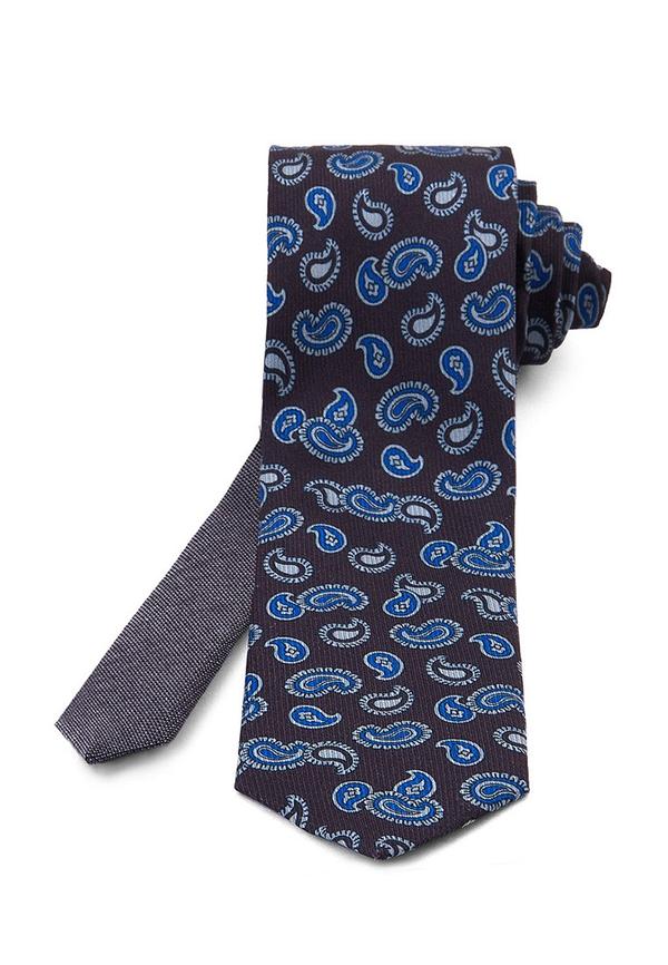 Черный галстук Rietti из шелка и сорочечного денима–шамбре. Комбинированный галстук ручной работы c голубым рисунком восточные огурцы создан по канонами пошива люксовых галстуков. Аксессуар состоит из 3 частей выкроенных по диагонали (две детали из шелка одна - хлопок) на нижней стороне галстука расположена шлевка для продевания узкой части. Галстук Rietti будет служить долго благодаря максимальной защите шелка покрытием Teflon ®. Оригинальный галстук станет хорошим подарком для приверженцев эко-моды. Он выполнен из натуральных материалов и предлагается в перерабатываемой крафт-упаковке. Неформальный галстук Rietti в сочетании с пиджаком и джинсами подчеркнет хорошее воспитание чувство стиля и добавит немного иронии в повседневный костюм.