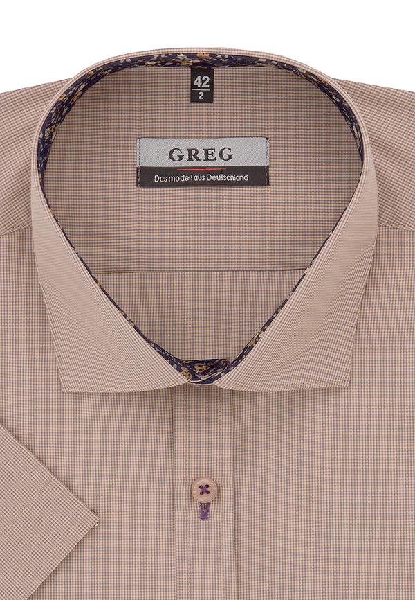 Бренд: GREG (Германия) Произ-во: РФ РБ Цвет: Бежевый Модель: Зауженная навыпуск укороченная Ворот: Французский маленький Состав: 90% хлопок 10% полиэстер Отделка: внутренняя стойка воротника из ткани компаньона спереди планка петли и пришив пуговиц фиолетовыми нитками http://www.arabella.ru/catalog/korotkiy_rukav/574_109_02_kzs_p_1_sorochka_muzhskaya_korotkiy_rukav/