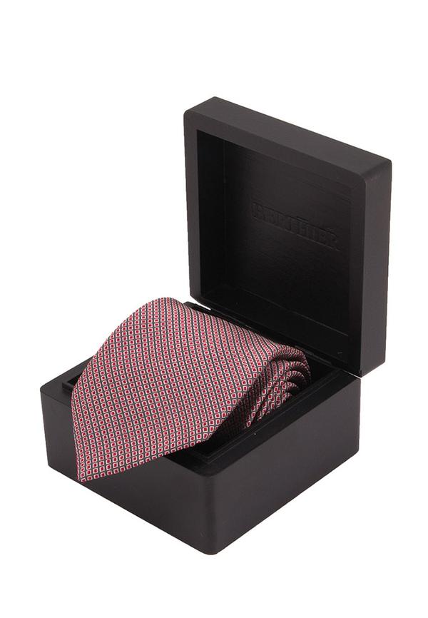 Галстук BERTHIER красный из 100% шелка с мелким геометрическим рисунком. Стильный аксессуар ручной работы состоит из 3 частей выкроенных по диагонали. На нижней стороне галстука расположена шлевка для продевания узкой части. Элегантный галстук надолго сохранит безупречный вид благодаря двойной системе защиты от загрязнений и порчи. Teflon Fabric Protector образует защитный слой вокруг каждой нити шелка. Стряхните попавшую на галстук жидкость и ваш галстук опять как новый! Button Lock надежно фиксирует галстук на сорочке любого размера избавляя от необходимости заботиться о нем в течение дня. Галстук BERTHIER - прекрасный подарок в рамках бизнес-стиля он предлагается в деревянной шкатулке и в фирменном бумажном пакете.