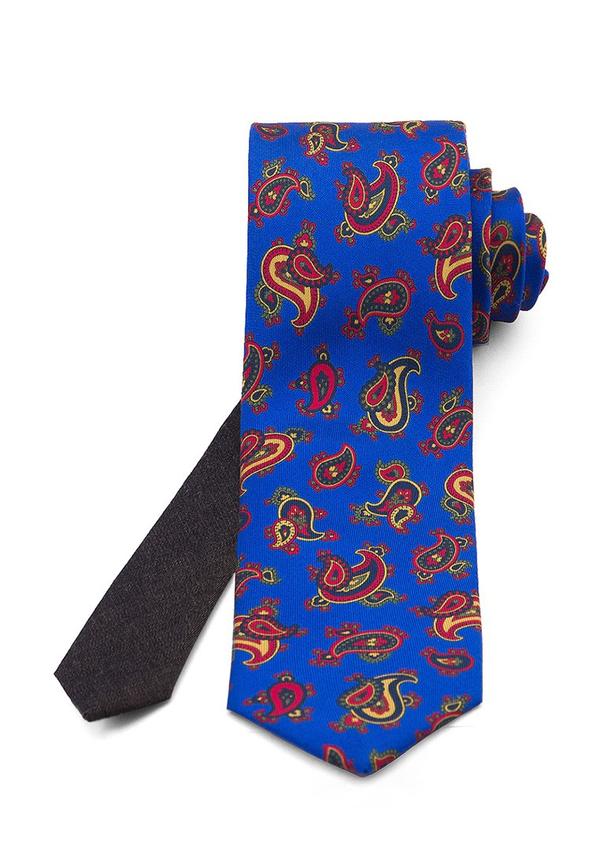 Синий галстук Rietti из шелка и сорочечного денима–шамбре. Комбинированный галстук ручной работы c желто-красным рисунком восточные огурцы создан по канонами пошива люксовых галстуков. Аксессуар состоит из 3 частей выкроенных по диагонали (две детали из шелка одна - хлопок) на нижней стороне галстука расположена шлевка для продевания узкой части. Галстук Rietti будет служить долго благодаря максимальной защите шелка покрытием Teflon ®. Оригинальный галстук станет хорошим подарком для приверженцев эко-моды. Он выполнен из натуральных материалов и предлагается в перерабатываемой крафт-упаковке. Неформальный галстук Rietti в сочетании с пиджаком и джинсами подчеркнет хорошее воспитание чувство стиля и добавит немного иронии в повседневный костюм.