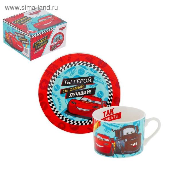 Набор кружка с блюдцем "Ты герой" Тачки, 200 мл