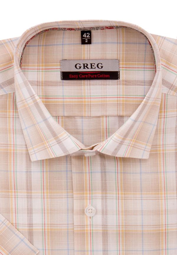 Приталенная бежевая сорочка Greg из дизайнерской коллекции хлопковых тканей. Тщательный контроль над всеми этапами производства от компании Michael Henne Textilien.GmbH гарантирует высокое качество изделия. Создана по немецким лекалам с учетом особенностей телосложения российских мужчин. Хлопковая сорочка мало сминается и легко утюжится благодаря новейшим технологиям изготовления ткани. Безупречную форму французского маленького воротника надолго сохраняют качественные прикладные материалы. Оригинальность сорочки в многоцветную клетку подчеркивает цветочный кант по нижнему краю внутренней стойки. Приталенную модель можно носить как заправленную в брюки так и на выпуск. Сорочка Greg создает идеальный силуэт и обеспечивает необходимую свободу движений.