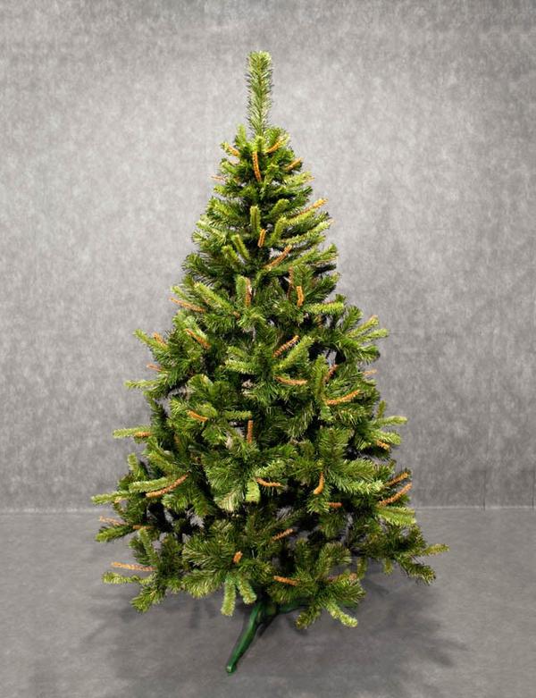 Оригинальная модель искусственной ёлки с имитацией молодых побегов. Вся хвоя выполнена из пленки ПВХ зеленого и коричневого цвета. Молодые побеги имеют более светлый оттенок зеленого цвета. Ёлка имеет ровную пирамидальную форму.