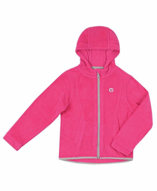 Куртка флисовая для девочек розовая Crockid c капюшоном, на застёжке-молнии, рельефы фигурной формы спереди и сзади (на спинке и полочке). На полочке фирменная вышивка Crockid, карманы с листочкой с рельефом. Спинка длиннее полочки посередине.