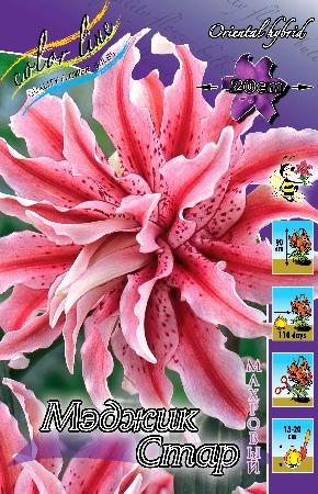 ГУСТОМАХРОВЫЙ. розовый с красной полосой по центру лепестка, красным редким крапом и белой кантом по краю лепестков