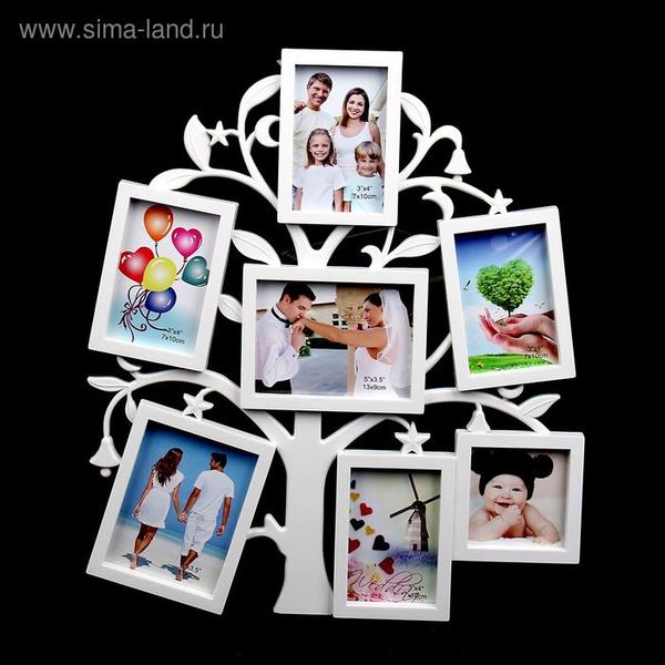 Фоторамка на 7 фото 7х7 см, 7х10 см, 8х10 см "Дерево желаний" белая