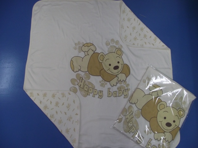 Плед из интерлока двухслойный : 1 сторона интерлок набивной 2 сторона интерлок однотонный с апликацией аналогичной набивному рисунку. цвет молочный.р-р 120х90 см Цвет Экрю,