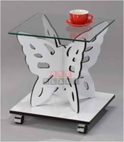 Креативный столик Бабочка со столешницей из прозрачного, ударопрочного стекла. Толщина стекла 8 мм. Столик оснащен колесиками. Площадка стола изготовлена из МДФ, толщина 15 мм.