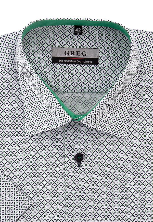 Бренд: GREG (Германия) Произ-во: РФ РБ Цвет: Зеленый Модель: Зауженная Ворот: Французский Состав: 90% хлопок 10% полиэстер Рисунок: В мелкие элементы Отделка: внутренняя стойка воротника из ткани компаньона пуговицы синие петли синие пришив пуговиц в тон отделки http://www.arabella.ru/catalog/greg/143_309_2096_z_1_sorochka_muzhskaya_korotkiy_rukav/