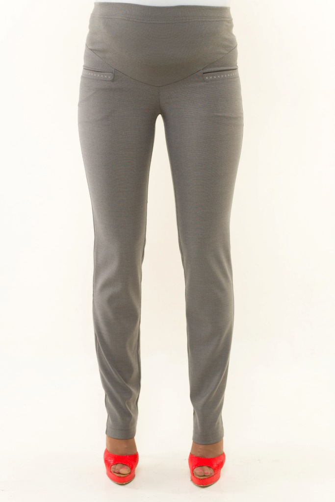 Ткань-тонкий габардин, центральная бандажная вставка. Впереди и сзади кармашки-обманки в виде прорезей. Цветовая гамма: светло-серый