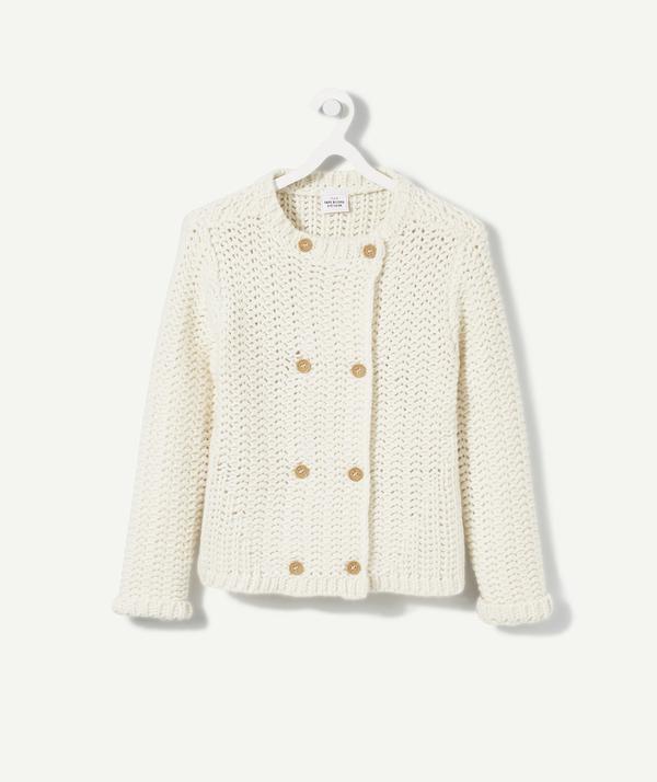 Don't forget! This product is at the same price for all ages from 2 to 14. This knitted cardigan is super cute with its little buttons! It goes really well with all of your little girl's outfits! CARDIGAN, round neck, long sleeves, buttons, knitted.