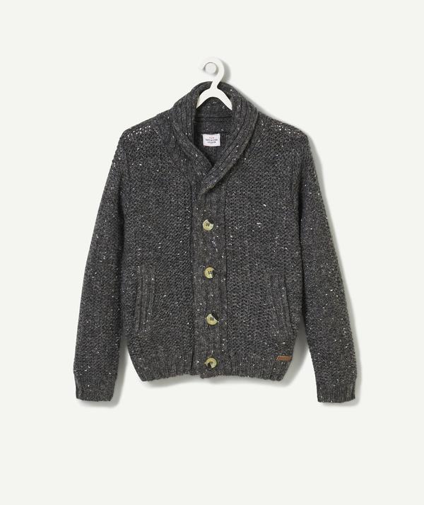 The cardigan: a wardrobe must-have to make your little boy the most stylish one in the playground! CARDIGAN HOTEL, high collar, long sleeves, button fastening, stitch detail, 15% wool, flecked.