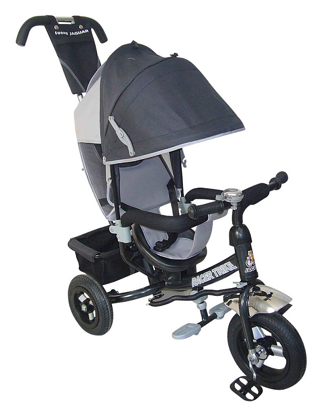 Детский трехколесный велосипед Funny Jaguar Racer Trike Air с колясочной крышей на надувных колесах – настоящее спасение для мам с маленькими детьми. Главное место для ребенка – анатомическое кресло, дополненное специальным чехлом из ткани. Данный чехол выступает страховкой для маленьких ребят, так как имеет разделитель для ног. К тому же, предусмотрен защитный поручень с мягкой накладкой. Велосипед Funny Jaguar дополнен подголовником, позволяющим ребенку отдыхать во время движения. Для солнечной погоды имеется складной козырек. Производитель предусмотрел и удобство управления велосипедом для родителей. Надежная хромированная ручка позволяет с легкостью управлять велосипедом, за счет поворота переднего колеса и задавать направление движения. Детский трехколесный велосипед позволяет ребенку наслаждаться прогулкой и самому участвовать в управлении.