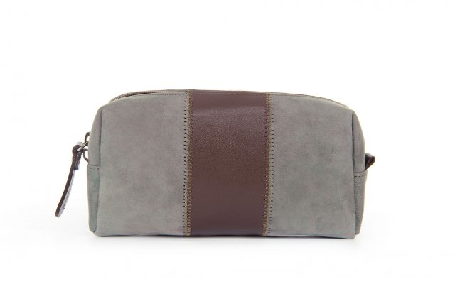 Косметичка ESTELLA (нубук серый/кожа какао)