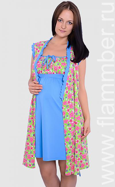 Комплект для беременных и кормящих Flammber артикул Л047 состоит из халатика без рукава и сорочки на тонких брелеях.