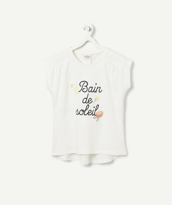 With a round neck and decorative sleeves, this t-shirt with its embroidered design is perfect for everyday wear! With a skirt or a pair of coloured trousers, yellow for example to welcome the sun, your little girl will have a top-class look. .