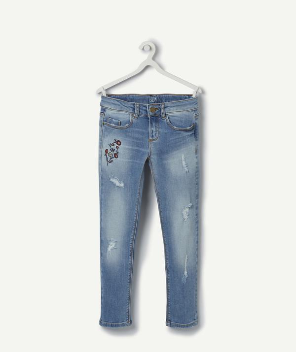 Style and comfort! Your little girl is going to love these super stylish worn effect jeans with flower embroidery. For wearing every day! Adjustable waist with a zip and hook and eye closure. .