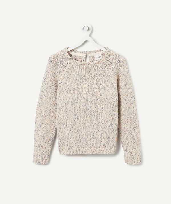 Ideal for the last of the cold days, this jumper with its decorative knit is so easy to wear over a t-shirt. We love the coloured yarn which cheers up any look! A teardrop-shaped fastening at the back makes it easy to slip over the head. .