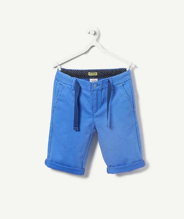 For special occasions this summer, these blue bermudas are the perfect piece They are comfortable so your little boy will be completely comfortable whatever the occasion. We love the coloured strings at the front. The waist is adjustable and they fasten with a button and zip. .