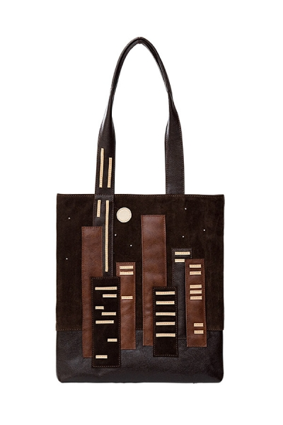 Сумка женская, натуральная кожа и (или) натуральная замша. На передней стенке аппликация из разноцветной кожи. Карман на молнии и карманы для мелочей и мобильного внутри. Вмещает формат А4. Размер: 32х5х38 (см), ручки 31 (см)