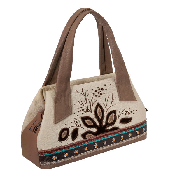 Сумка женская, натуральная кожа и (или) натуральная замша. На передней стенке аппликация из разноцветной кожи с вышивкой. Внутри два отделения, карманы на молнии, карманы для мелочей и для мобильного. Закрывается на молнию. На задней стенке карман на молнии. Размер: 39х15х24 (см), ручки - 20 (см)