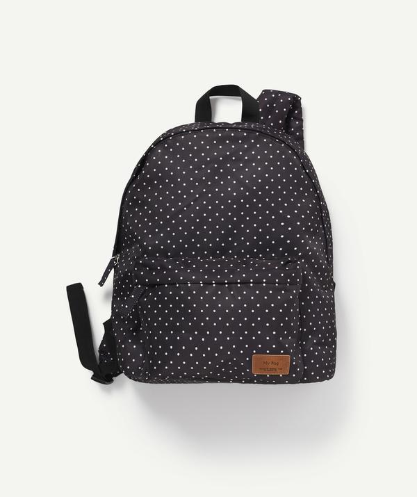 Sprinkled with white spots, this backpack is a practical accessory both for going to school and going away for a weekend. The straps are adjustable for even more comfort. The product plus: it is super-large and will hold lots: 38 cm high, 28 cm wide and 11 cm deep