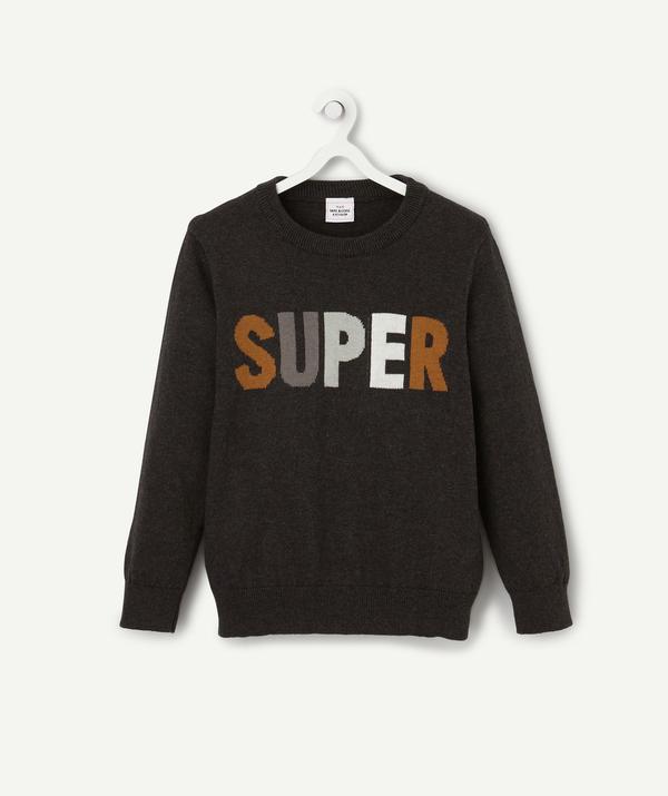 Cotton blend jumper. Elasticated rib at the wrists, at the waist and on the round neck. The coloured message on the front completes the message on the back.