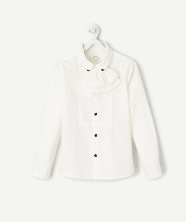 A perfect cotton shirt for your Dandy Wolf. It is accompanied by a removable ruffled cravat to button around the neck. That way, little boys can choose their own world. The shirt is buttoned all the way down and at the wrists.