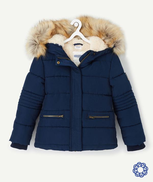 With its bright colour and its lovely warm lining, this padded jacket is a wardrobe must-have. Its padding makes it very voluminous: your little girl will never be cold again! This padded jacket is gathered at the back and has two zipped pockets for a super look. The fur on the hood is removable to change the look in the blink of an eye. Warmth and lightness: The padding of this coat is 100% polyester, secured in place by layers of fabric to prevent it from settling if it gets wet. Like a cushion, the coat retains air so it stays light.
