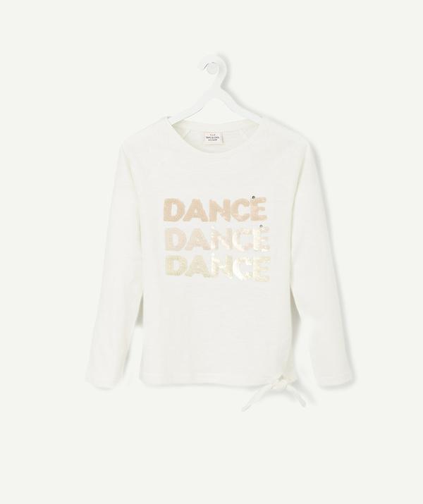 T-shirt in cotton, with long sleeves and a round neck. With a bow at the waist and a design in coloured sequins. Cotton 100% https://www.t-a-o.com/en/fashion-girl/tee-shirt/cream-knotted-t-shirt-with-sequins-snow-white-89275.html