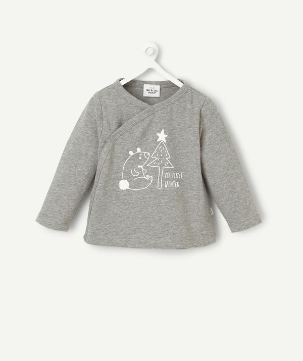 Grey marl top in a cotton blend. Press-stud fastening on the right-hand side. Printed on the front. Cotton 95% , Elastane 5% https://www.t-a-o.com/en/top/grey-cotton-top--mixed-grey-b20-88747.html