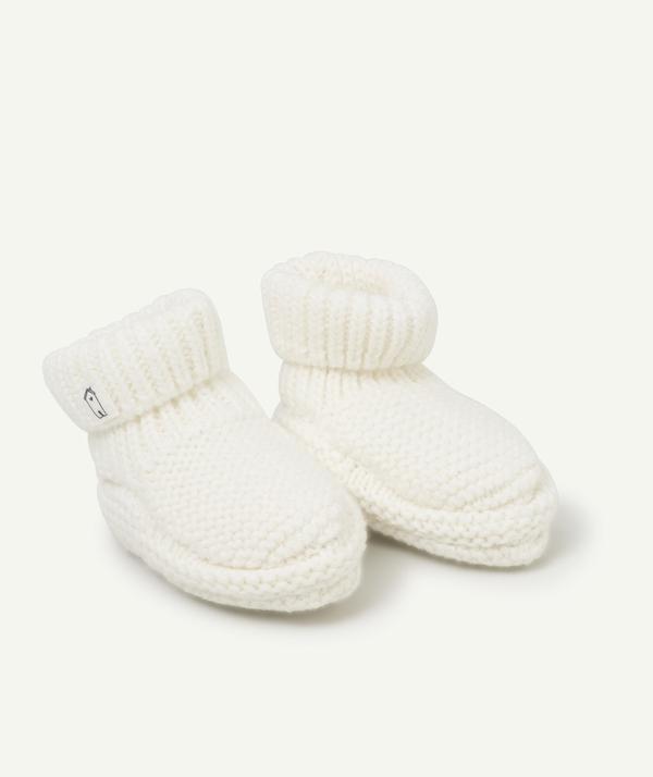 We just adore these booties which can be paired with the ANEW cardigan. BOOTIES, knitted, turn-downs, contain wool.