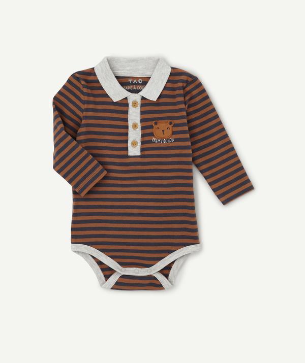 Long sleeved body, buttons at the neck and between the legs. Coloured stripes and a patch on the front. Delightfully soft and warm material.