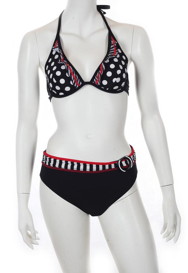 Элегантный раздельный купальник Sunmarin - красивая модель черно-белого цвета с красной отделкой. №6345 ОСТАТКИ СЛАДКИ!!!!