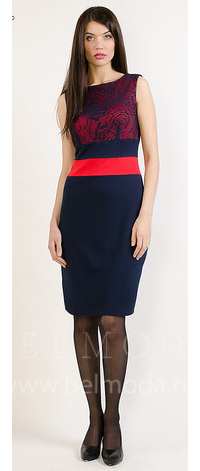 95% ПЭ, 5% спандекс Великолепное трикотажное платье приталенного силуэта поможет создать женственный образ. Модель без рукава и округлым вырезом горловины. Верх изделия оформлен изысканным кружевом. Контрастная вставка на поясе.